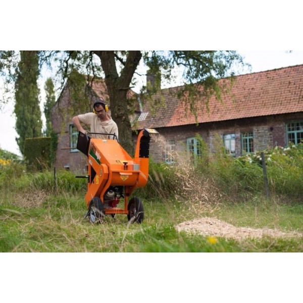 Evacuation des copeaux en hauteur permettant de remplir une brouette ou une remorque, machine compacte et maniable