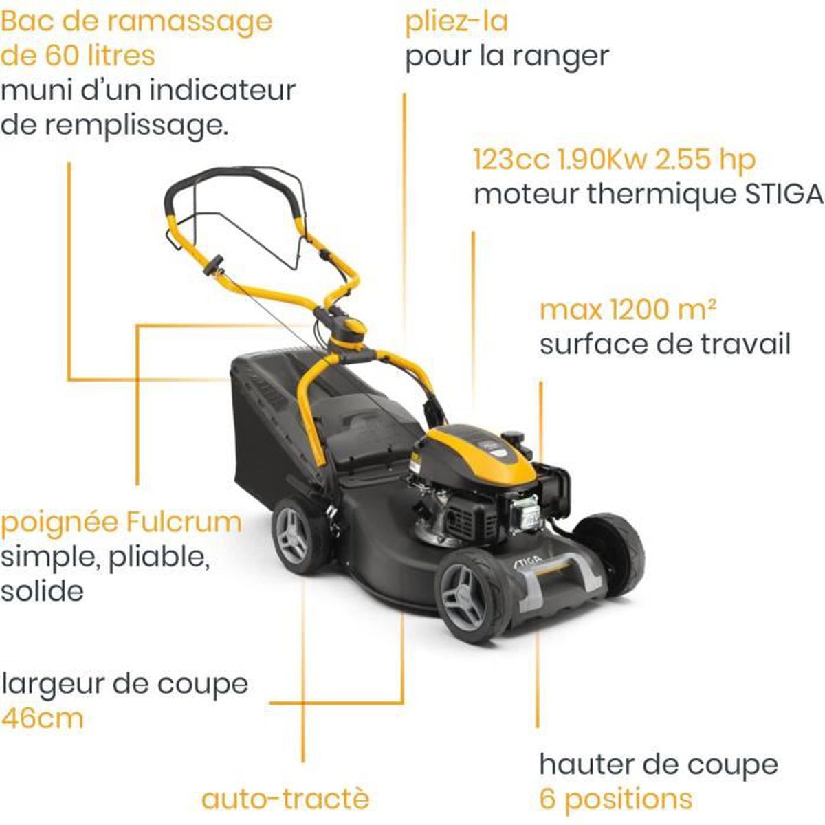 Tondeuse Thermique Collector 548 S Moteur À Cm3 1900 W Largeur Coupe 46 Cm Bac Ramassage 60 L