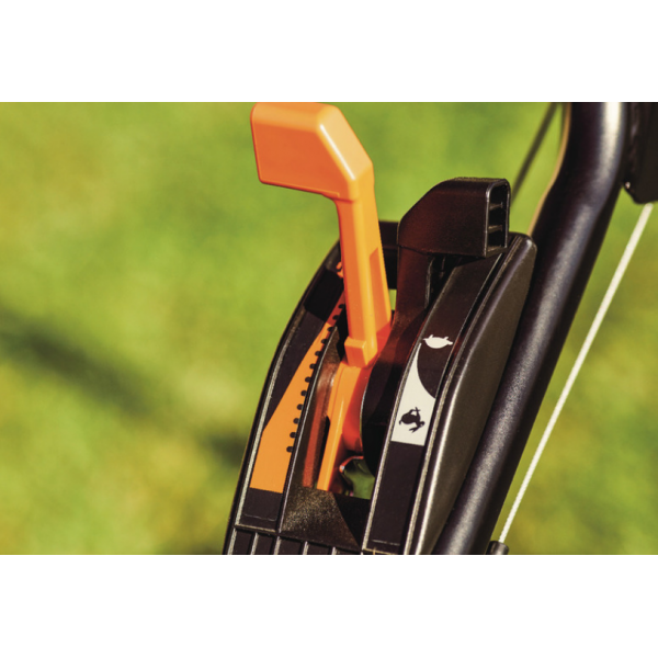 Vous apprécierez sa grande maniabilité avec ses grandes roues à roulement à billes ainsi que son réglage de la hauteur de coupe centralisé rapide et sans effort à 7 positions de 19 à 101 mm.