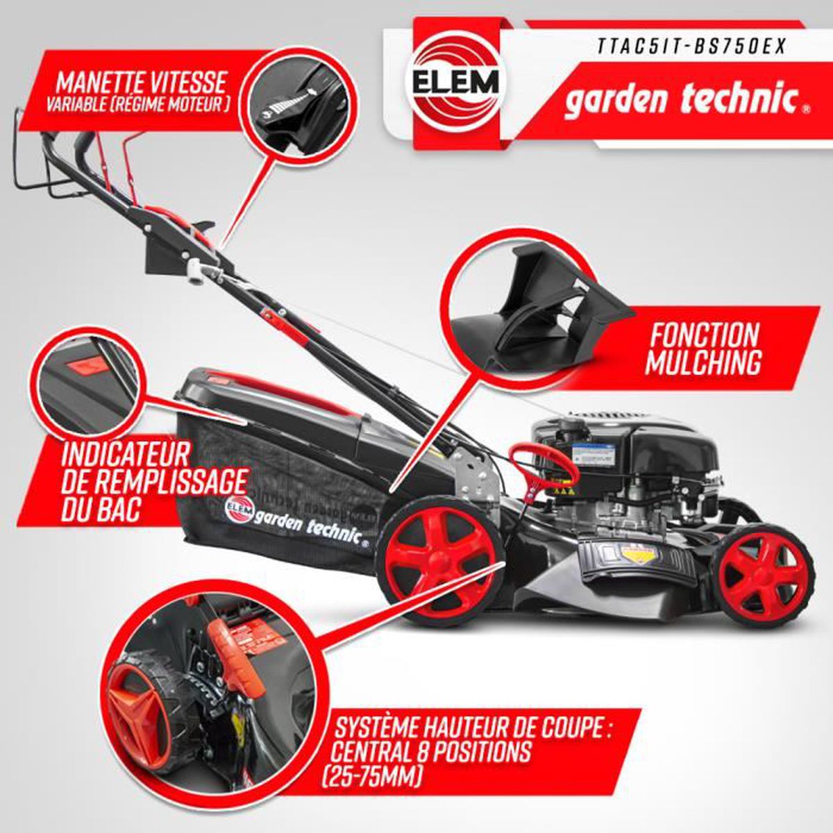 Cette tondeuse thermique autotractée équipée d?un moteur Briggs and Stratton BS750EX est parfaite pour les personnes à la recherche d’un outil puissant et rapide. Grâce à sa largeur de travail de 506 mm, elle est adaptée à la tonte de moyen ou grand terrain. Elle vous offrira un travail parfait grâce à son système de réglage centralisé sur 8 positions permettant d’adapter facilement la hauteur de coupe.Muni